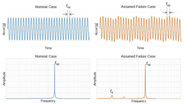 假設(shè)fop為機械系統(tǒng)(比如旋轉(zhuǎn)電機)的工作頻率,fe為系統(tǒng)的錯誤/故障模式頻率(圖3)。在此例中,fe低于fop并且在該圖中顯示,也就是說,由于機身松動,電機正在緩慢振動。對于傳統(tǒng)加速度傳感器,為了檢測這種故障模式,人們需要用MCU/DSP進行頻率分析。而MCU/DSP一直保持工作狀態(tài),會導(dǎo)致額外的內(nèi)存空間需求以及更高的功耗。