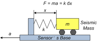 在大多數(shù)加速度傳感器中,彈簧不是盤(pán)簧,而是一種將質(zhì)量恢復(fù)到初始位置的東西。一些傳感器采用擺錘或隔膜代替彈簧。