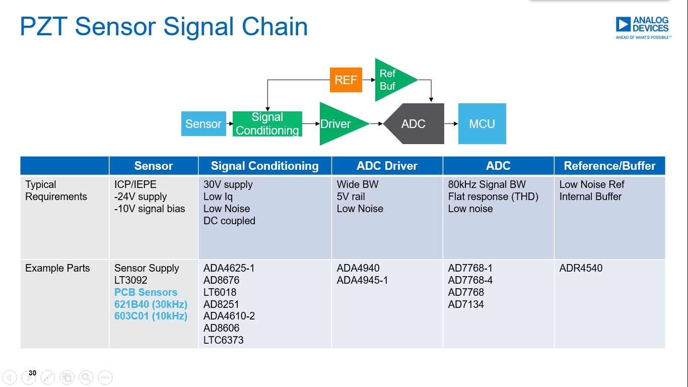 當(dāng)然,如果想繼續(xù)選用PZT傳感器,ADI也可以提供后續(xù)調(diào)理和數(shù)據(jù)采樣方案: