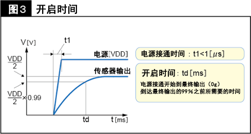 「開啟時間」是指接通電源后,在元件變?yōu)镺N狀態(tài)之前所需耗費的時間。圖3即是用圖表形式來表示到達最終輸出的99%之前所需要的時間。