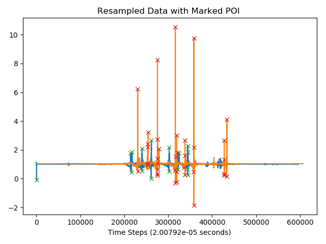 圖3:記錄已重新采樣,并且其“興趣點(diǎn)”在圖上標(biāo)有“ X”。這些點(diǎn)旨在捕獲在兩個(gè)信號(hào)中都已記錄的主要“事件”