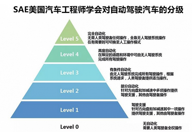 L3指有條件的自動化;L4指高度自動化,具體可參照SAE汽車工程師學會對自動駕駛汽車的分級。按照北美標準,可能未來要發(fā)展到Level5,才能實現(xiàn)理想狀態(tài)中、無需方向盤的全無人駕駛。