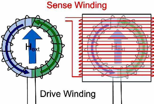 磁通門(mén):由磁環(huán)芯和至少兩個(gè)線圈繞組組成:驅(qū)動(dòng)繞組和感應(yīng)繞組
