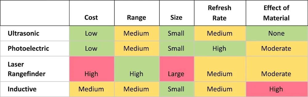 利用電磁波束而不是聲波,激光測距儀傳感器的工作原理與超聲波傳感器相似。雖然近年來這項技術(shù)在經(jīng)濟(jì)上變得更加可行,但與超聲波和其他技術(shù)相比,它仍然是一個更昂貴的選擇。