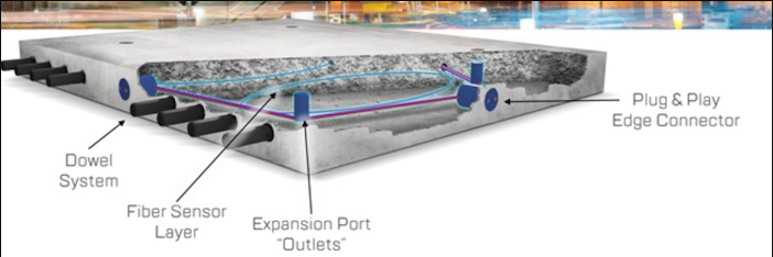 嵌入預制混凝土路面的光纖傳感器層利用蝕刻的光纖和入射光的失真來解釋有關其上方道路上發(fā)生的情況的數(shù)據(jù)。