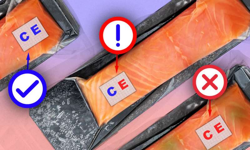 大約16小時后,研究小組觀察到,僅在被大腸桿菌污染的魚片中,“ E”從藍色變?yōu)榧t色,表明該傳感器可準確檢測出細菌抗原。再過幾個小時后,所有樣品中的“ C”和“ E”都變成紅色,表明每個菲力都變質(zhì)了。