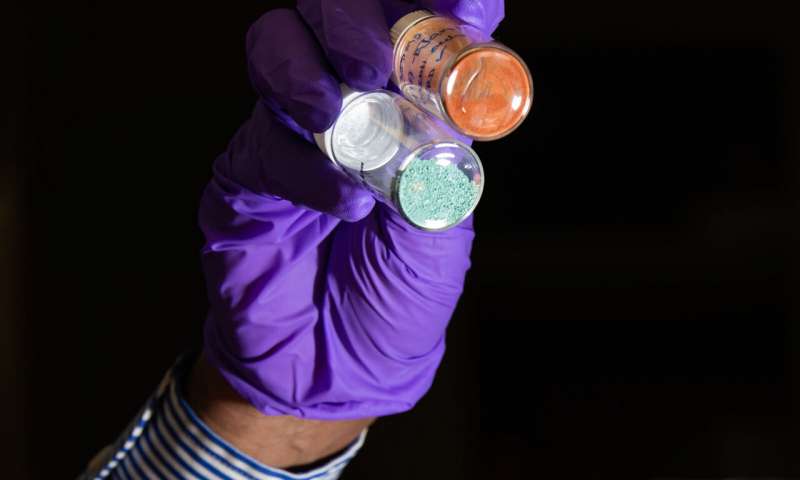 金屬有機框架材料類似于海綿,用于將捕獲的PFOS靶向微流板內的小探針。圖片來源:Andrea Starr | PNNL