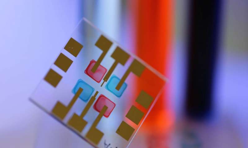 通過使用半導(dǎo)體墨水進(jìn)行噴墨打印而制成的顏色選擇有機(jī)光傳感器。圖片提供:KIT的Noah Strobel