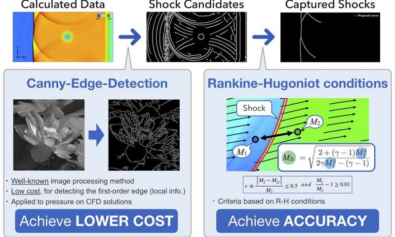 在這項新研究中,研究人員將圖像處理方法與可壓縮流物理學中預期條件的理論相結(jié)合,即當流體具有可壓縮效果時,例如當流體以比聲速更快的速度運動時會產(chǎn)生沖擊波。這種速度是造成震動的原因。