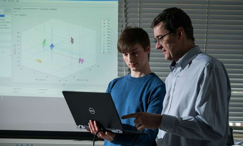開(kāi)源軟件“ Dave”:數(shù)據(jù)可視化(如背景所示)幫助AndreasSchütze教授(右)和研究助理Julian Joppich(左)以交互方式優(yōu)化測(cè)量系統(tǒng)。圖片來(lái)源:Oliver Dietze
