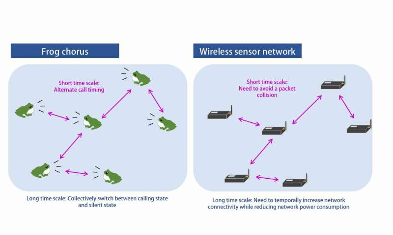 該研究的合著者大知小南解釋說:“我們發(fā)現(xiàn)相鄰的青蛙避免了時間上的重疊,這為清晰地聽到個人聲音提供了路徑。” “以同樣的方式,傳感器網(wǎng)絡(luò)中的相鄰節(jié)點需要改變數(shù)據(jù)傳輸?shù)臅r序,以使數(shù)據(jù)包不會發(fā)生沖突。”