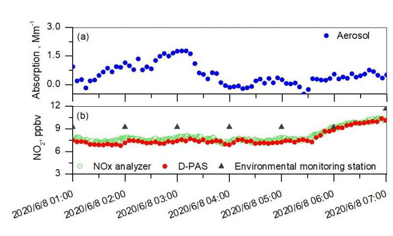 在實(shí)驗(yàn)過程中,開發(fā)的D-PAS傳感器與商用NOX分析儀在大氣中測(cè)量NO 2時(shí)的比對(duì)和一致性證明了這種新型D-PAS傳感器的可靠性。