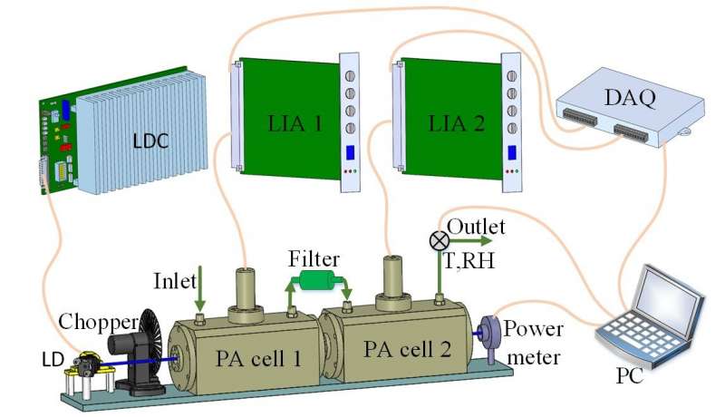 研究小組成員劉Kun教授解釋說:“該P(yáng)AS(D-PAS)基于443 nm激光二極管! “通過優(yōu)化聲諧振器的結(jié)構(gòu),我們實(shí)現(xiàn)了在線測(cè)量氣溶膠吸收和NO 2的高靈敏度和大流量!