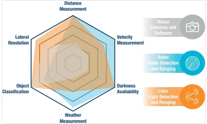 為此,流行的技術(shù)主要是激光雷達(dá)、雷達(dá)和攝像頭。然而,通常情況下,通常需要三者的組合。