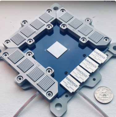 1- RANOVUS 的高度可擴(kuò)展的 Odin 硅光子引擎,它利用了公司在多波長(zhǎng)量子點(diǎn)激光器 (MW QDL)、基于 100Gbps 硅光子學(xué)的微環(huán)形諧振器調(diào)制器和光電探測(cè)器、100Gbps 驅(qū)動(dòng)器、100Gbps TIA 和控制電路方面的顛覆性創(chuàng)新。節(jié)能且具有成本效益的單芯片 EPIC(電子光子集成電路)。