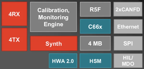 總之,一些重要的硬件產(chǎn)品包括 4 個(gè) Rx 和 Tx 通道、一個(gè)雷達(dá)預(yù)處理硬件加速器塊、4 MB 片上存儲(chǔ)器以及一個(gè)內(nèi)置校準(zhǔn)和監(jiān)控引擎。由于這些改進(jìn),TI 表示與市場(chǎng)上的其他解決方案相比,AWR2944 的雷達(dá)分辨率提高了 33%,雷達(dá)范圍增加了 40%。增加的雷達(dá)范圍歸因于基于多普勒分多址 (DDMA) 的信號(hào)處理,這提高了 SoC 從更遠(yuǎn)的地方檢測(cè)迎面而來的車輛的能力。