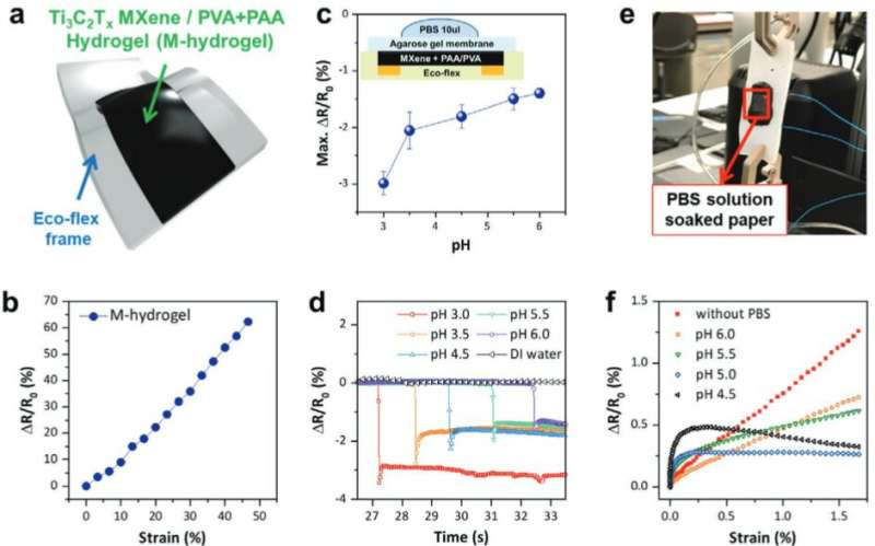 使用新型 MXene水凝膠化合物開發(fā)的原型可穿戴傳感器能夠通過隨著機(jī)械應(yīng)力的增加產(chǎn)生不同的電阻模式來跟蹤肌肉運(yùn)動(dòng)。當(dāng)傳感器暴露于酸性或堿性溶液形式的額外離子時(shí),這些模式會(huì)立即發(fā)生變化。