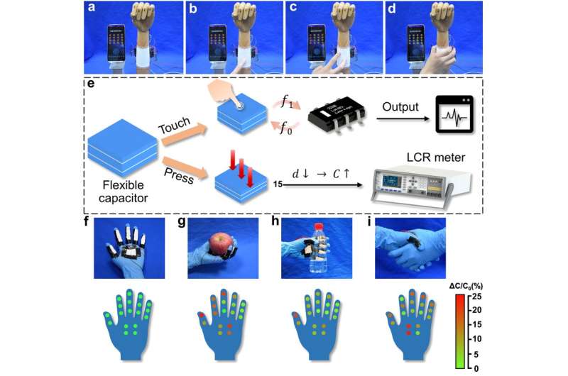 用于接觸和壓力傳感的柔性電容器。圖片來源:王萌等。