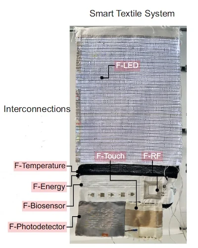 該研究使用對稱和非對稱編織圖案將六個輸入光纖設(shè)備集成到紡織品中,以實(shí)現(xiàn)包括觸摸感應(yīng)、無線電力傳輸和環(huán)境監(jiān)測在內(nèi)的多種功能。
