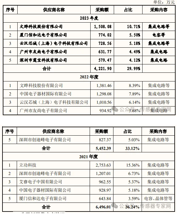 據(jù)招股書顯示,三大業(yè)務(wù)板塊中,嵌入式板卡及模塊產(chǎn)品線近三年占比均超過40%,是致遠(yuǎn)電子營收支柱,2023年度營收1.93億元;CAN-bus 總線通訊類產(chǎn)品線營收占比30%左右,為第二大產(chǎn)品線,2023年度營收1.54億元;測試測量分析儀器產(chǎn)品線占比20%左右,2023年度營收1.23億元。 主要財務(wù)指標(biāo)方面,2021-2023年報告期內(nèi),公司營業(yè)收入分別為 41,460.67 萬元、48,451.54 萬元和 47,731.37 萬元,實(shí)現(xiàn)凈利潤分別為 12,586.98 萬元、15,758.05 萬元和12,090.00 萬元。 總體上看,致遠(yuǎn)電子營收呈上升趨勢,其中2023年營收略有下滑,招股書稱受新能源汽車、光伏儲能等下游行業(yè)需求景氣等因素影響,且2022年度CAN-bus總線通訊類產(chǎn)品線、測試測量分析儀器產(chǎn)品線收入增長較快。 本次IPO中,致遠(yuǎn)電子擬向社會公眾公開 發(fā)行人民幣普通股不超過 2,000.00 萬股,擬募集資金為8億元,將投入到新一代工業(yè)智能物聯(lián)產(chǎn)品研發(fā)項(xiàng)目 、EsDA 平臺升級研發(fā)項(xiàng)目、制造中心升級項(xiàng)目以及補(bǔ)充流動資金。 值得一提的是,致遠(yuǎn)電子是國內(nèi)少數(shù)自建物聯(lián)網(wǎng)操作系統(tǒng)及開發(fā)生態(tài)的中國物聯(lián)網(wǎng)企業(yè),其物聯(lián)網(wǎng)生態(tài)稱為EsDA生態(tài)(Embeded system Design Automation,嵌入式系統(tǒng)設(shè)計自動化技術(shù)生態(tài)),包括AWorksLP 物聯(lián)網(wǎng)實(shí)時操作系 統(tǒng)、AWStudio 嵌入式應(yīng)用可視化開發(fā)平臺、AXPI 資源管理平臺、AWTK GUI 引擎及ZWS物聯(lián)網(wǎng)云平臺等自研技術(shù)平臺:致遠(yuǎn)電子EsDA生態(tài)涵蓋技術(shù)優(yōu)勢有: 目前,致遠(yuǎn)電子的產(chǎn)品已進(jìn)入比亞迪、寧德時代、陽光電源、天地科技、魚躍醫(yī)療等知名行業(yè)客戶供應(yīng)鏈體系 ,其中,近三年,比亞迪均是致遠(yuǎn)電子前五大客戶之一。 此外,致遠(yuǎn)電子前五大客戶還有北漢科技、微丹電子、京東數(shù)智工業(yè)、旭儀科技等。 采購方面,致遠(yuǎn)電子采購原料來自NXP、TI、ADI、ISSI、XILINX、納芯微、思瑞浦、瑞芯微、復(fù)旦微、興森科技等國內(nèi)外知名半導(dǎo)體廠商或其代理商。 致遠(yuǎn)電子主要采購產(chǎn)品為集成電路,前五大供應(yīng)商涵蓋多家知名電子元件分銷商,包括文曄科技、信和達(dá)電子、云漢芯城、中電器材(中電港)等。 實(shí)控人夫婦IPO前夕已協(xié)議離婚,三輪問詢,獨(dú)立性等多個問題被審議 據(jù)招股書股權(quán)結(jié)構(gòu)顯示,目前致遠(yuǎn)電子實(shí)控人為周立功、陳智紅,二人合計占據(jù),持有發(fā)行人 76.96%的股權(quán),為發(fā)行人控股 股東、實(shí)際控制人,致贏投資、立功科技、廣州求遠(yuǎn)系實(shí)際控制人的一致行動人。 其中,周立功、陳智紅直接持有發(fā)行人 35.81%、 31.84%的股權(quán),通過持有致贏投資、立功科技、廣州求遠(yuǎn)的股權(quán)而間接持有發(fā)行人 2.68%、6.63%的股權(quán)。 此前,周立功、陳智紅二人系夫婦關(guān)系,于 2022 年 3 月 2 日協(xié)議離婚,但通過簽署《一致行動協(xié)議》,保證了公司控制權(quán)結(jié)構(gòu)的穩(wěn)定性。 值得關(guān)注的是,致遠(yuǎn)電子曾是立功科技的全資子公司,立功科技于1999年成立,2020年7月立功科技沖擊上市,后撤回IPO申請。 此后,致遠(yuǎn)電子從立功科技脫離,尋求獨(dú)立上市:2022年5月,經(jīng)股東一致同意后公司正式變更為現(xiàn)今的“廣州致遠(yuǎn)電子股份有限公司”。