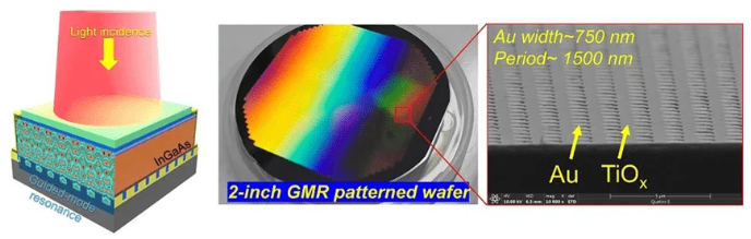 導模共振(GMR)結(jié)構(gòu)是一個源于電磁學的概念,它通過在特定波長下創(chuàng)造共振條件來提高光吸收效率。這一創(chuàng)新不僅拓寬了吸收光譜,還支持與基于互補金屬氧化物半導體(CMOS)的讀出集成電路(ROIC)進行混合及單片三維集成,為下一代超高分辨率圖像傳感器鋪平了道路。